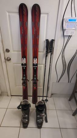 Comes with Skis with bindings,, boots and poles 162cm lenght. I have all sizes for Skis, boots , poles, etc.