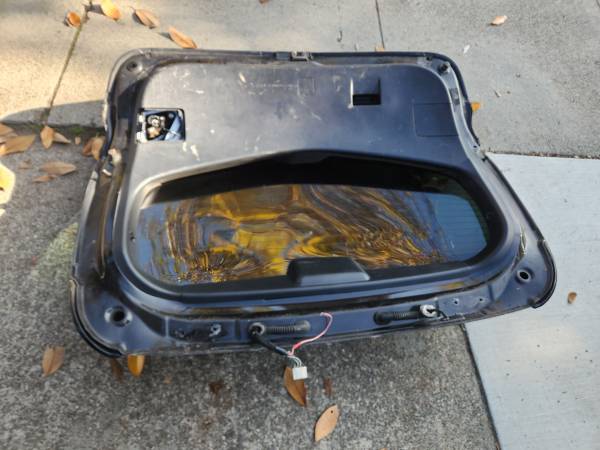 As pictured. Button, wiper, lights all worked. Bulbs missing. Window is tinted. Has dent but opens and closes fine. Leave a phone number.
