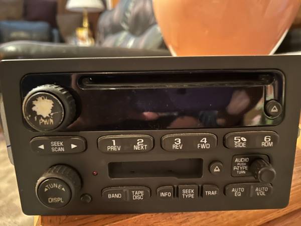 Original stereo from 2004 Chevy Tahoe. Has CD and cassette players. All work we just upgraded to something newer.