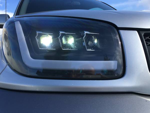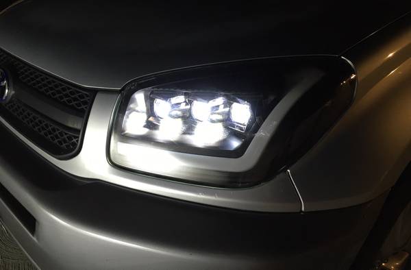 3 LED beam projector lights and LED Amber turn signal + LED White Daytime driving for safety lights.