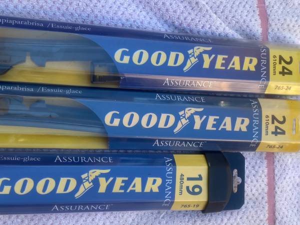 NEW STILL IN THE BOX GOODYEAR ASSURANCE WINDSHIELD WIPERS 2 NEW IN THE BOX 24 inch 1. NEW IN THE BOX. 19 INCH MUST SEE SEE ALL THE PICTURES WILL SELL SEPARATE OR ALL TOGETHER CONTACT TOM AT
