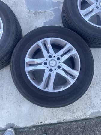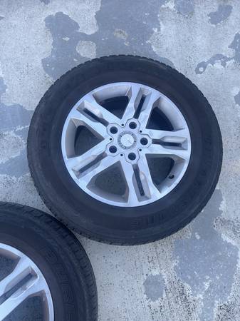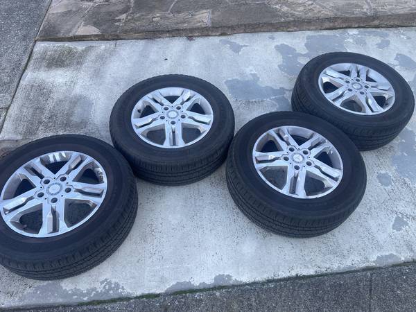 For Sale are 4 G550 W463 wheels. They came off of my 2012 G550. The bolt pattern is 5x130. The tires are Bridgestone Dueler 265/60 R18. There is still a good amount of tread on them, but should be replaced as they were manufactured in 2019. The price for all 4 wheels is $500 OBO.