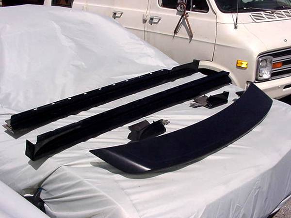 2003 2004 Mustang MACH 1 front bumper, 2 side sills and 2 end caps, and the MACH 1 trunk lid spoiler - all in factory original BLACK paint for sale for BEST CASH OFFER for all 6 parts, and the front bumper still has the original lower driving lights and wiring in it too - show contact info
