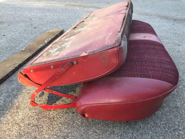 1965 Chevy Corvair fold- down rear seat assembly. Original factory option. The warped seat back is made of cardboard stock. Was $275 Now $250