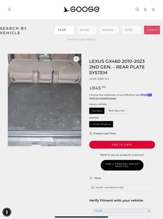 I have a “like new” Lexus GX460 2010-2023 2nd Gen Rear Plate system from Goose Gear. No scratch it’s like new. This is only for replacement of the 3rd row. Cash only. Serious Inquiry Only. Victor