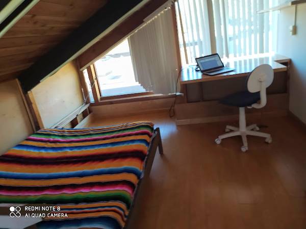 AVAILABLE DEC 14 - Furnished loft room in quiet and cozy 3 bdr / 2 bth townhouse. Single occupancy. Share house with two Italian males: Andrea (biz analyst at HP) and Gabriele (postdoc at Stanford).
