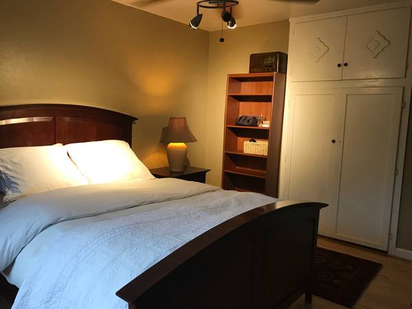 The room is furnished with a full size bed and has a private entrance ( Small french doors to the outside)