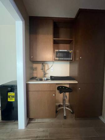 - Appliances: Microwave, coffee machine, and mini fridge.