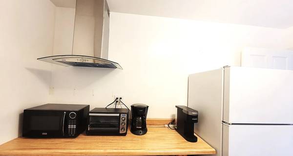 • Microwave, oven toaster, coffee maker, full size fridge and a lot of cabinet space. No access to house main kitchen.