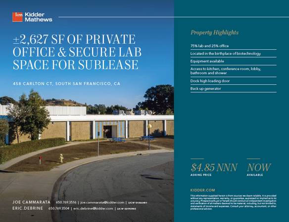 ±2,627 SF of Private Office & Secure Lab Space for Sublease