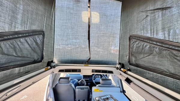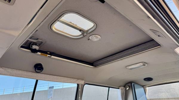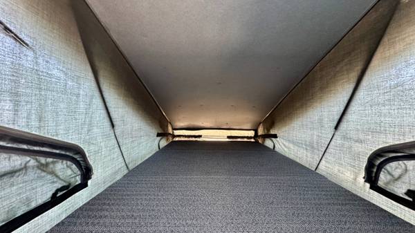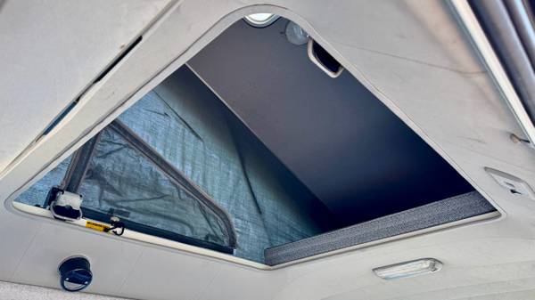 - cabin lighting, roof vent, venting side windows with shades, and storage all around