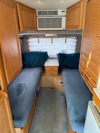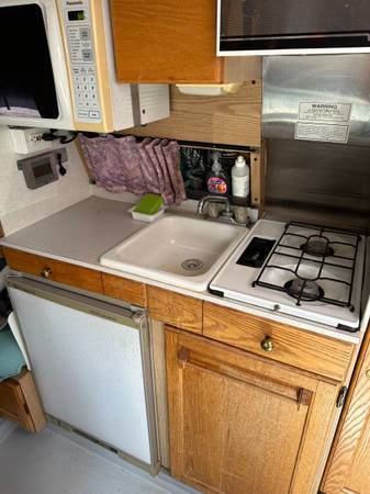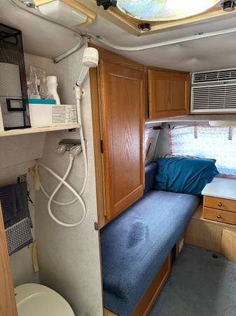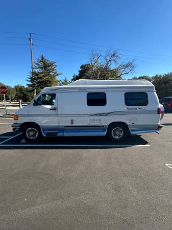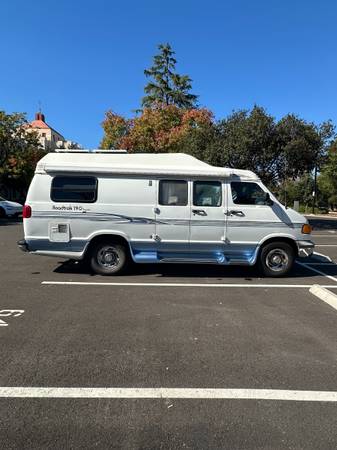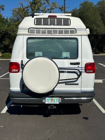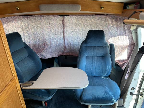 For sale is our wonderful part time home on wheels. Built on a Dodge chassis with a reliable 5.2 V8 (318cid) which is 19.5' long allowing easy parking, and 8'4" tall allowing drive-thru access while still providing 6' interior standing room. Both forward chair swivel aft and the rear bench seats convert into a comfortable bed. Appliances include propane heater, propane water heater, 12v/110v/propane refrigerator, 2 burner stove, sink, interior & exterior showers all with hot/cold water, 110 AC, microwave. On board generator can run the 110v appliances while boon docking. Some issues are the exterior awning isn't working, and the dash has a small crack.