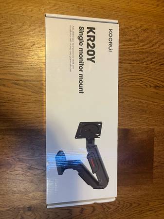 Unopened single monitor mount with 360 rotation, and 85 to -30 degree tilt.