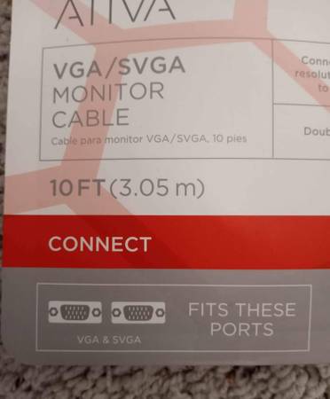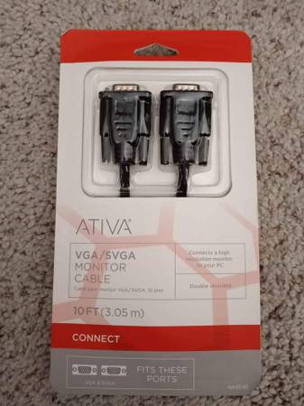 Ativa VGA/SVGA 10 Foot Monitor Cable Connects a high resolution monitor to your PC Double Shielded This cable is double shielded to provide superior performance in larger monitors. Includes two...