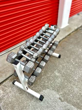 All dumbells are available and everything is in good condition. No issues pairs are listed below.:- 5-10-12-15-20-25-30-35-40lbs $375 Rack for dumbells $50 $425 firm with rack .