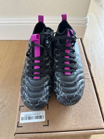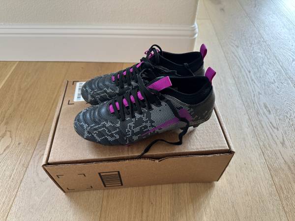 Girls / Womens black/purple TOPSFEBA soccer cleats, size 38, in like new condition with box. Worn for 10 mins on artificial grass, barely touched the ball! $30 cash, Venmo or PayPal only.