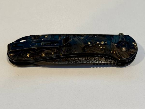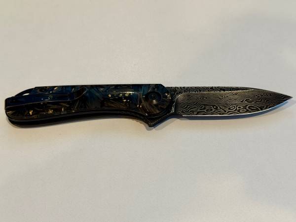 Like-new Civivi Elementum pocket knife, black carbon fiber & gold flake resin scales and 2.96" damascus blade. Full specs here: https://www.civivi.com/products/civivi-elementum-c907c-ds1