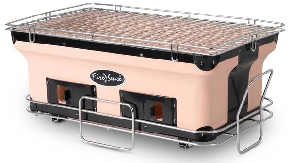 Fire Sense 60450 Yakatori Internal Grates Charcoal Chrome Cooking Grill Japanese Table BBQ Handmade Using Clay Adjustable Ventilation For Outdoor Barbecues Camping Traveling - Large - Tan