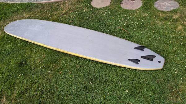Solid Foam Stand Up Paddle Board SUP 10' x 22". Good condition, some divots filled with hot glue. 3 fins, loop to connect leash. Near Skyline Blvd. Paddleboard surfboard skeg fin thrusters water...