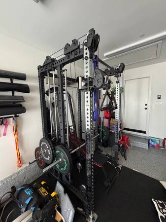 All-in-One Power Rack + Functional Trainer + Smith Machine, 3x3, plate-loaded cables, attachment set
