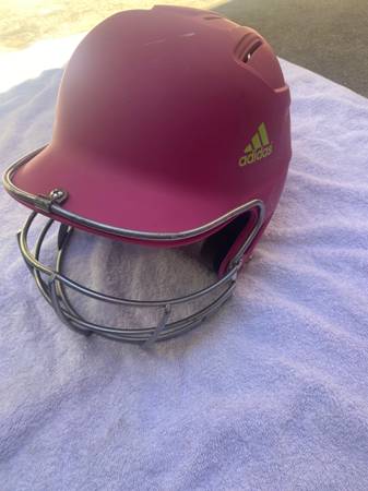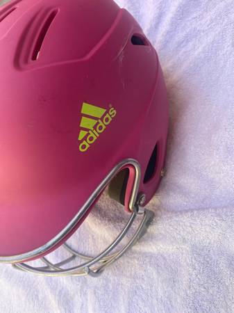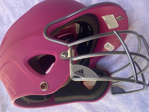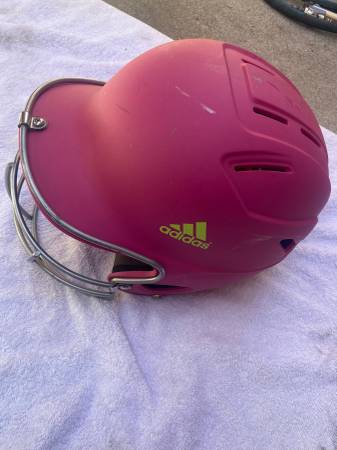 LIKE NEW ADIDAS DESTINY PINK BATTING HELMET WITH FACE GUARD ADJUSTABLE SIZE 6 3/8 - 7 5/8 IN GOOD WORKING CONDITION MUST SEE SEE ALL THE PICTURES CONTACT TOM AT