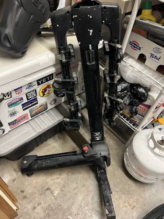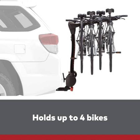 Swings away from car with bikes loaded to provide easy access to rear of vehicle