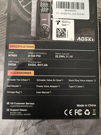 What's in the Box: The car tire inflator portable air compressor comes with everything you need: Portable Tire Inflator *1, Ball Needle *1, Schrader Valve Air Hose *1, Presta Valve Adapter *1, Swim Ring Valve Adapters *2, Type-C Charging Cable *1, and a convenient Storage Bag *1. A user manual *1 is also included to ensure easy setup and use. This air pump for car tires includes the essential tools to support your inflation needs across a wide range of items