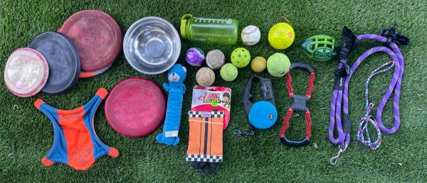 Assorted Dog Toys and Accessories good condition great deal! Includes KONG frisbees, balls, and leashes. All for $48 Assorted Dog Toys and Accessories good condition great deal!Price