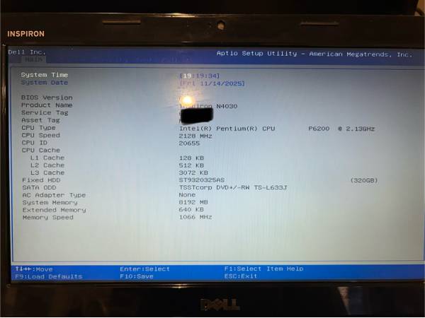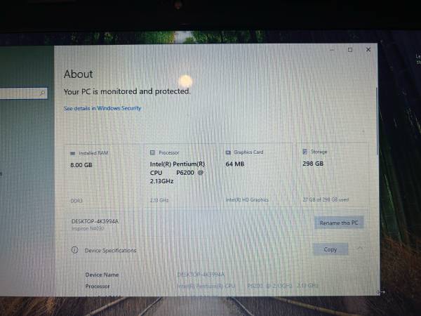 Dell Inspiron N4030 Intel Pentium P6200 @ 2.13GHz 8GB DDR3 1333MHz 320GB HDD Windows 10 Home (Windows 7 license sticker inside battery bay) Includes charger