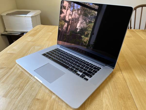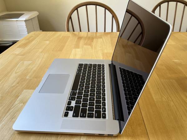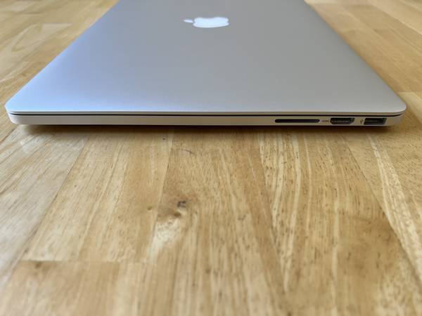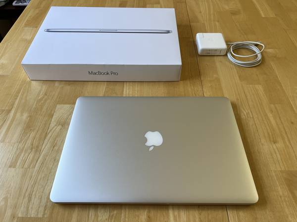For sale is a mid-2014 MacBook Pro 15" with Retina Display in absolutely perfect condition. This laptop has been my backup computer for most of its life and has only been used in a desktop environment where it was connected to an external display, mouse, and keyboard. The aluminum body does not have a single scratch on it, all the keys work perfectly (without any wear), the trackpad still clicks just like it did out-of-the-box, and the Retina display does not have any dead pixels or burn-in. Comes with original Apple power adapter, outer box, and associated documentation/accessories.