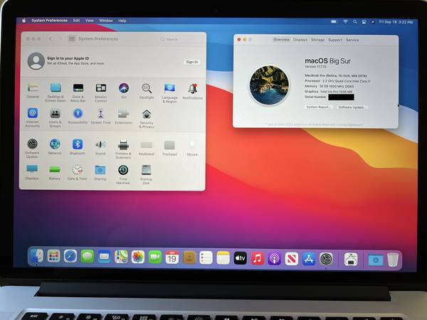 The MacBook has a fresh install of macOS Big Sur (the latest version officially supported by Apple on this machine). This would be a great laptop for someone interested in starting out with the Apple ecosystems or for someone who needs a computer for school.
