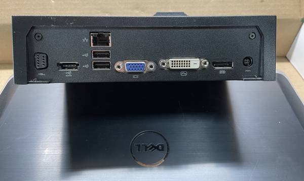 Includes powder adapter and dock. No hard drive included (drive used to install Windows 10 is not included and was for testing purposes), the drive cover is also missing but inexpensive on eBay (and not needed for function).