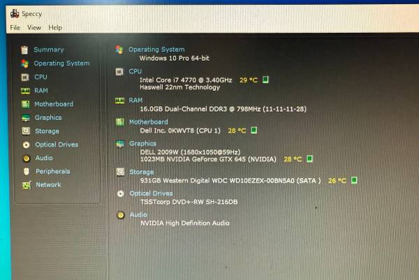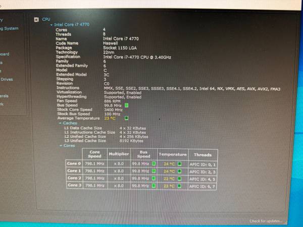 Intel i7 4770 CPU, 4 cores, 3.4 GHz