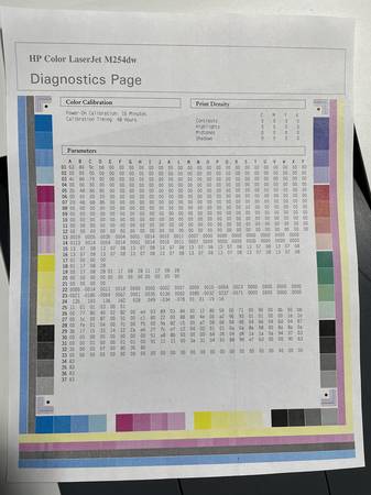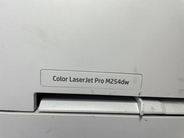 In good condition. Supplies are low and will need new toner soon. Has faint vertical streak but should go away once toner is replaced.