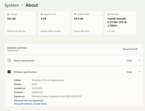 The system is freshly installed with Windows 11 Pro for Workstations (64-bit, version 24H2), fully updated, and verified through Lenovo diagnostics. Microsoft Office Professional Plus is included, activated, and requires no subscription. The original Lenovo 170W charger is also included.