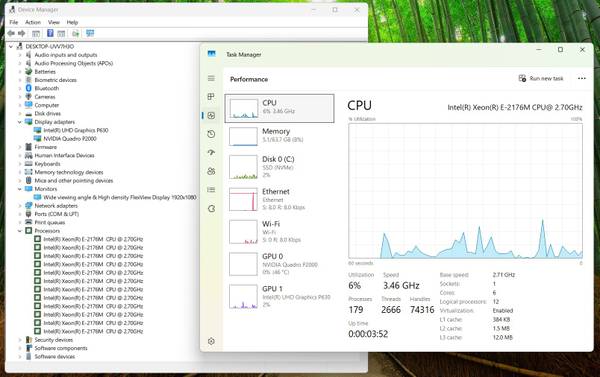 – Intel Xeon E-2176M (6 cores / 12 threads, up to 4.4GHz)