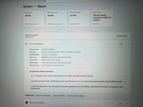 -11th gen i7, 1165G7 @ 2.80 GHz