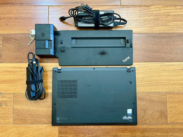 Included with the notebook is a Lenovo ThinkPad 40AJ docking station, complete with its 135W power supply. The dock expands connectivity with Ethernet, several USB ports, HDMI, and DisplayPort outputs, allowing easy connection to monitors and peripherals. Normally retailing for more than one hundred dollars, it’s provided at no additional cost.