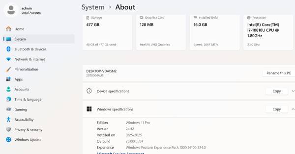 The operating system is Windows 11 Pro (64-bit, version 24H2), freshly installed, fully patched, and ready for immediate use. Microsoft Office Professional Plus comes preinstalled, permanently activated, and free of subscription requirements. Every component has passed Lenovo’s hardware diagnostics, confirming the machine is fully functional and in excellent working order.