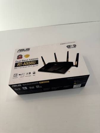Selling 2 Mint RT-AX88U routers. $110 each. AX6000 Dual Band 802.11ax WiFi Router supporting MU-MIMO and OFDMA technology, with AiProtection network security powered by Trend Micro, built-in WTFast...