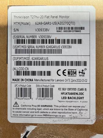 I have 2 brand new, never used, in box 20 inch ThinkVision Monitors $65 per monitor. You can buy 1 or 2
