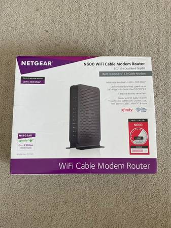 Used working router we no longer use. N600 WiFi Cable Modem Router 802.11n Dual Band Gigabit Built-in DOCSIS® 3.0 Cable Modem NETGEAR N600 Dual Band WiFi-300 + 300 Mbps Cable modem download speeds...