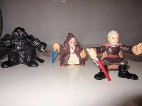 Hasbro Star Wars Galatic Heroes Figures (Anakin/Darth Maul/Obi Wan Kenobi/Hans Solo/Qui Gong/Count Duoku/Darth Vadar/Luke Skywalker) Asking $3 each or all 9 pc set for $20 Thanks for looking!
