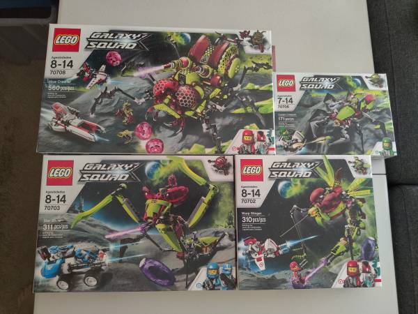 New sealed LEGO Galaxy Squad 4 sets Bundle price for all four sets. cash only. pick up in menlo park LEGO Galaxy Squad Hive Crawler 70708 https://www.amazon.com/LEGO/dp/B00CMHWTR6 LEGO Galaxy Squad...