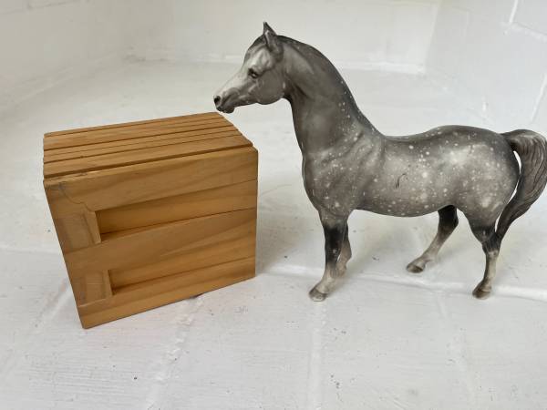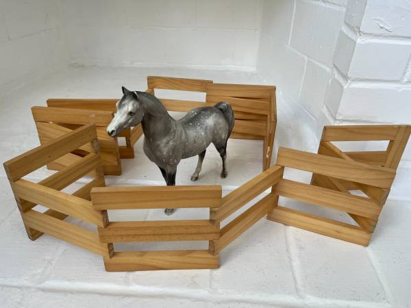 Realistic toy horse and enclosure. Horse about 12 inches high.