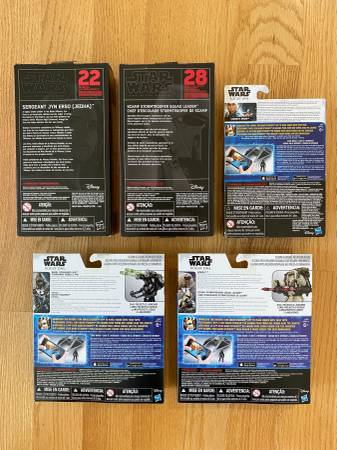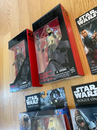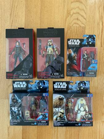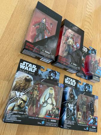 Jyn Erso, Scarif Stormtrooper Squad Leader, Imperial Death Trooper, Chirrut Imwe, Rebel Commando Pao, Moroff All brand new, sealed, in perfect condition.