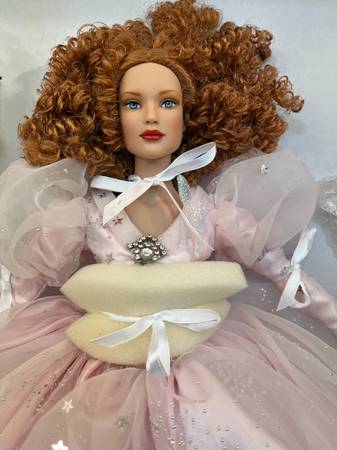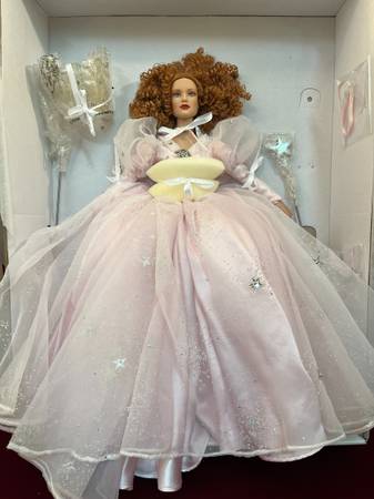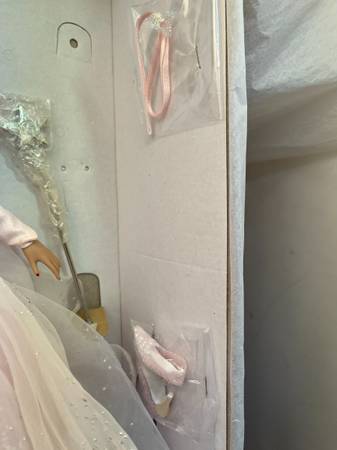 This is a beautiful doll dressed in gorgeous pink tulle dress with sequins. Comes with wand, shoes, crown, etc. See pix. Is in very good condition. Probably still new. Large box included.