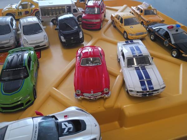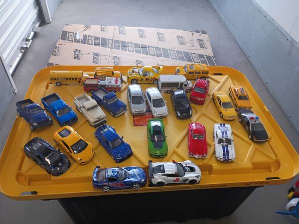 I am selling the 23 Diecast toys. sport Cars & trucks Services trucks ..& mini bus & the hybrids Cars Metal.... scale 1/ 34 Only in 2 hybrids Cars it's broken the plástic