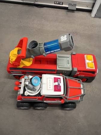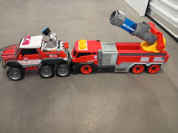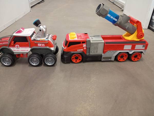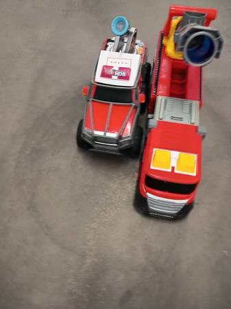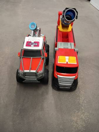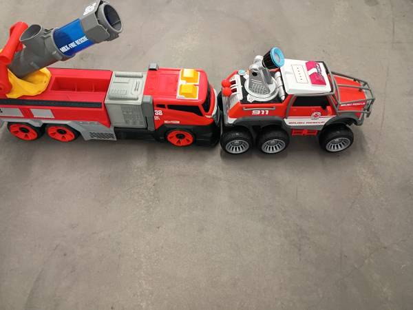 I am sell the 2 Big fire DEP truckings Connection for water Sound of motor-ligths Plástic duty Perfect condition $25 each or $45 for the 2 truckings