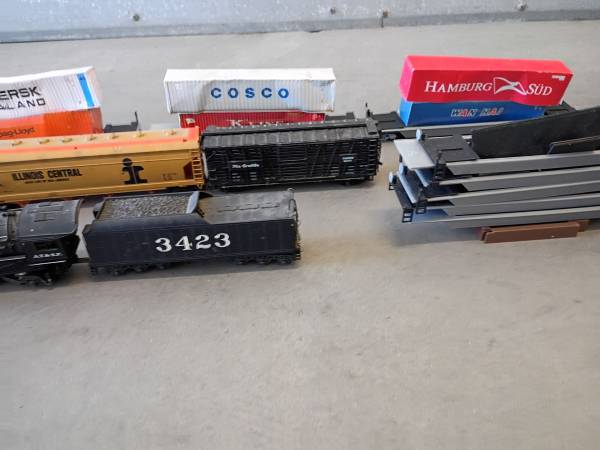 I.am selling these triana.s it's The Caterpillar train sounds lights In Perfect condition The 2 mini trains the locomotor of vapor need rapairs of 18 carriages & the 12 paper container Used in...